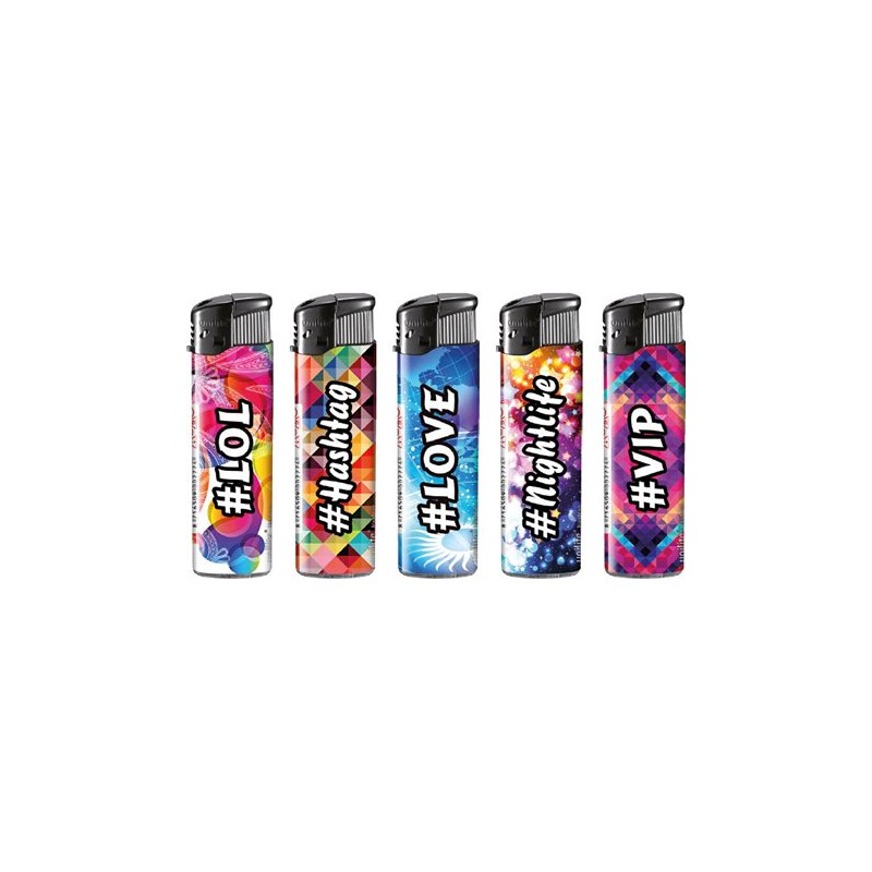 5 Leuke piezo aanstekers met een Hashtagprint erop.